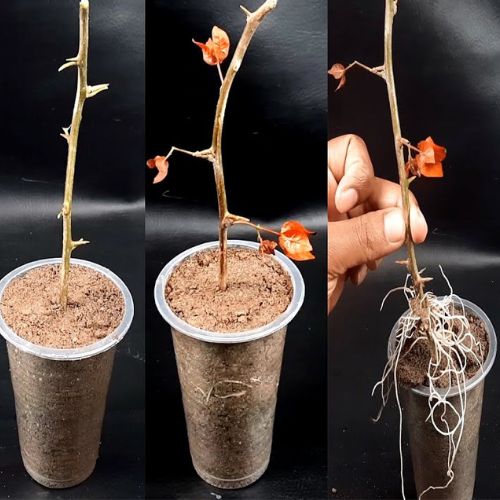 Three healthy, well-rooted red Bougainvillea cuttings