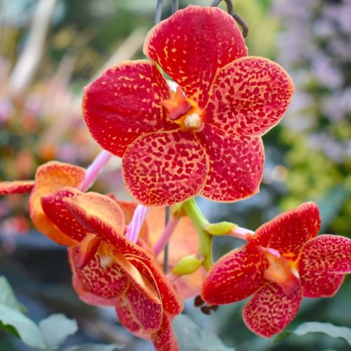 Bring vibrant color and exotic beauty to your home or collection with this red spotted Dendrobium orchid. Known for its stunning spotted petals and vivid red-orange hues, this orchid makes a perfect houseplant or decorative gift. Easy to care for, Dendrobium orchids thrive in bright, indirect light and bloom with elegant flowers that brighten any space. Ideal for orchid enthusiasts and indoor gardeners, this exotic orchid adds a touch of tropical elegance to your environment. Purchase this healthy blooming orchid to elevate your plant collection with nature’s artistry.