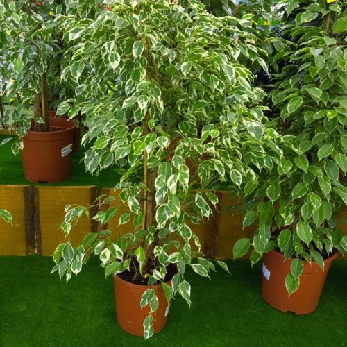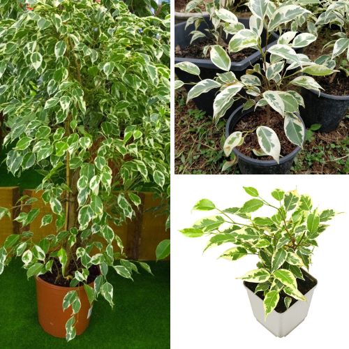 Buy Ficus Benjamina Variegated – a low-maintenance, air-purifying indoor/outdoor tree with glossy, variegated leaves that brighten spaces and improve air quality.