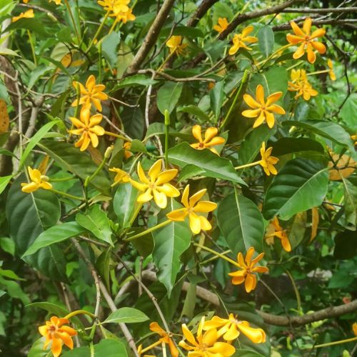 Gardenia carinata is a beautiful evergreen tree native to Southeast Asia, prized for its large, fragrant golden-yellow flowers that add elegance to any garden or landscape. This heat- and humidity-tolerant plant thrives in full sun to partial shade and prefers well-drained, acidic soil. Known for its medicinal properties, Gardenia carinata has been traditionally used for anti-inflammatory and antimicrobial benefits. It makes an excellent ornamental addition that supports biodiversity with its attractive blooms.