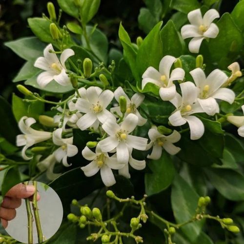 Shop Orange Jasmine live cuttings (Murraya Paniculata) for tropical indoor and outdoor gardening. Perfect for bonsais and houseplants with fragrant flowers and lush foliage.