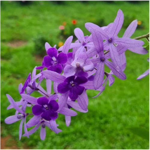 Petrea Volubilis, commonly known as Queen’s Wreath, Purple Wreath, or Sandpaper Vine, is a stunning tropical evergreen climbing vine prized for its vibrant violet-blue star-shaped flowers and unique sandpaper-textured leaves. It grows vigorously, reaching up to 12 meters in length as a vine or 4 meters as a shrub, making it ideal for trellises, fences, or pergolas in gardens and landscapes. This fast-growing vine thrives in full sun to partial shade, is drought tolerant, and moderately tolerant of salt, perfect for tropical and subtropical climates. Blooms mostly from late winter through early summer, attracting pollinators like bees and butterflies. Add this beautiful and hardy plant to enhance outdoor spaces with its spectacular floral display and textured foliage.